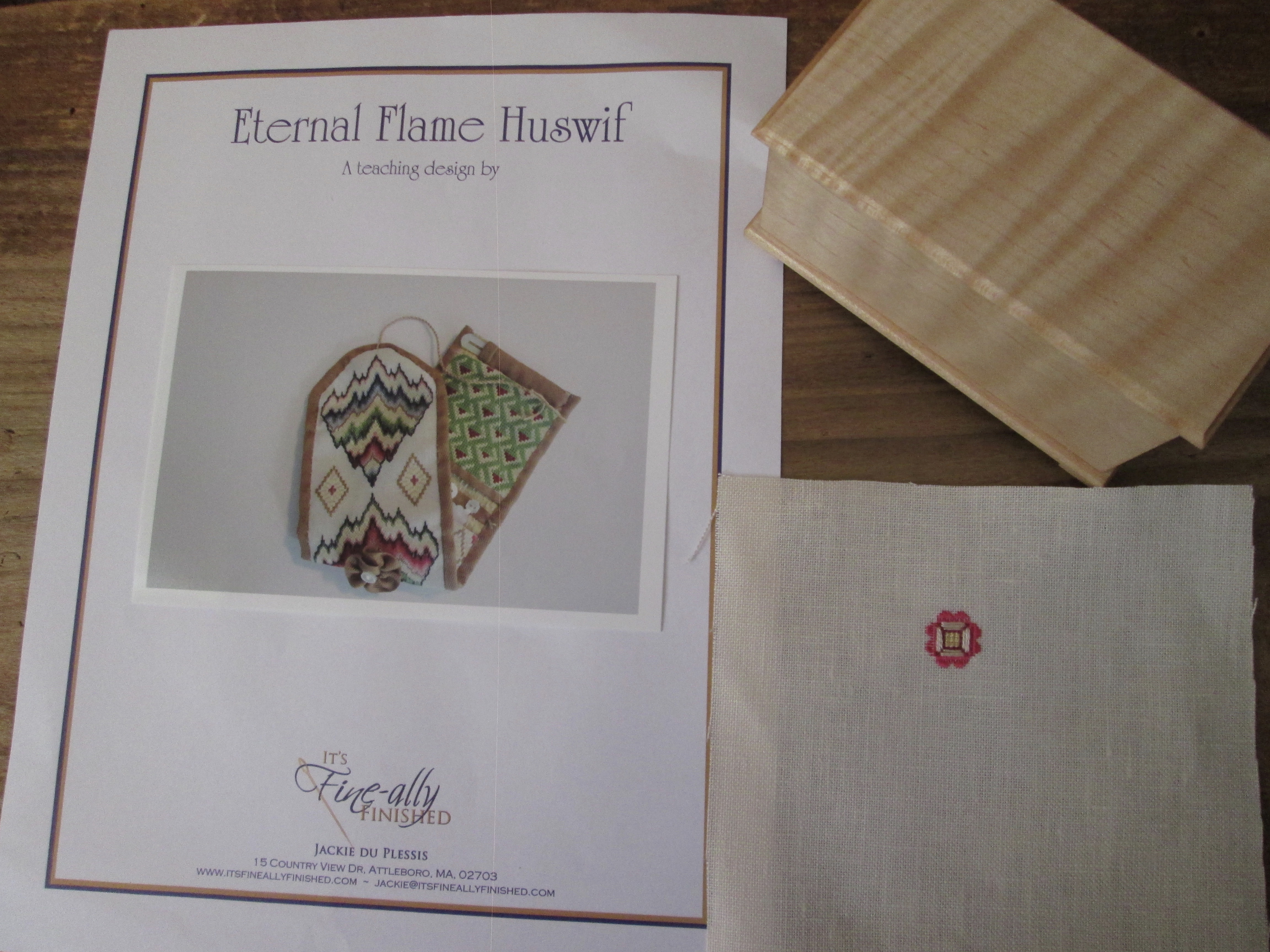 OK, I really like bargello patterns and this one is covered with them. Just like the Hornbook, the color palette is one that really appeals. And it will all live in the beautiful box that Jackie's husband, Naas, created for us.